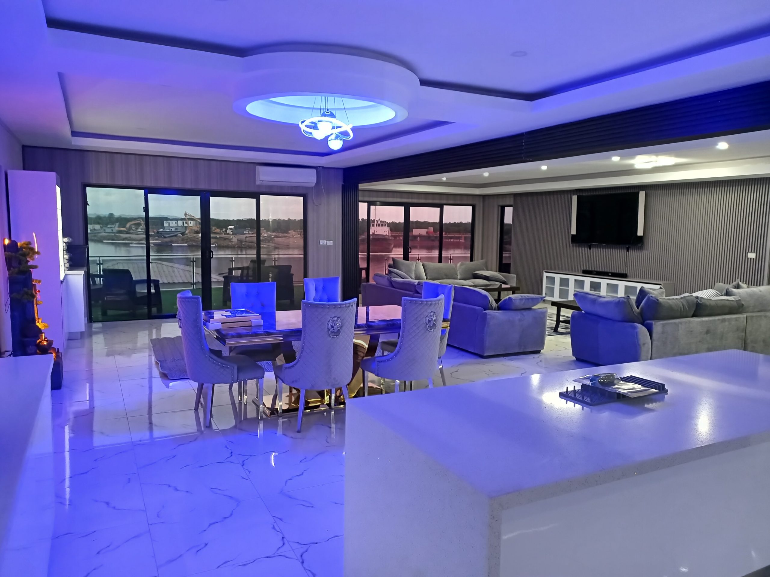 🌊 Absolute waterfront + private jetty 🏊♂️ Resort-style pool & entertainment spaces 🛋 Fully furnished with premium finishes ✨ Designer lighting & modern luxury throughout